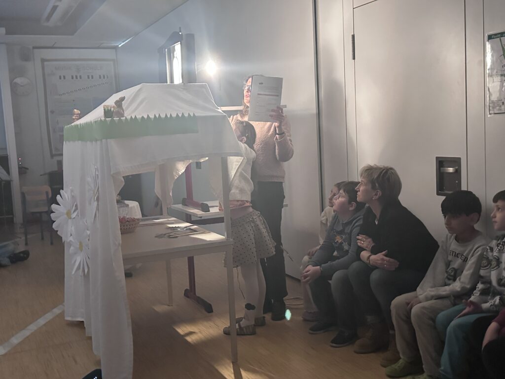 Ein besonderes Highlight war das Schattentheater „Osterhase Hanu schläft“. Doch damit nicht genug: Der Osterhase wurde schließlich geweckt und schaute sogar schon in den Klassen vorbei – zur großen Freude der Kinder brachte er vorläufig bereits die ersten Ostereier mit.